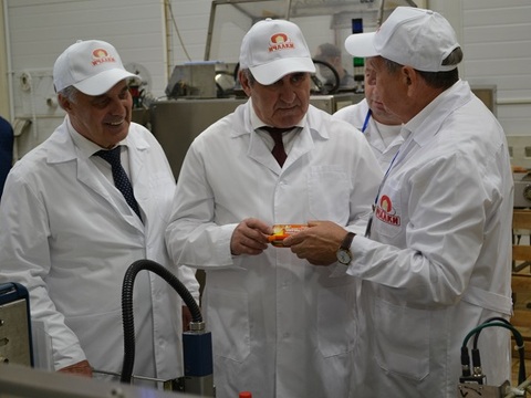 Сергей Неверов и Владимир Чибиркин вместе с генеральным директором сыродельного комбината «Ичалковский» Николаем Киреевым осмотрели цеха и складские помещения. Специалисты рассказали о технологии изготовления продукции.