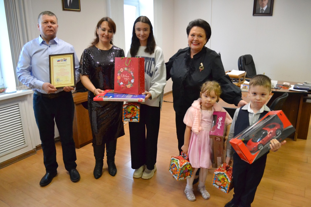 С ребятами пришли их родители Петр и Светлана. Наталья Долматова передала им Благодарность Председателя Госсобрания Мордовии Владимира Чибиркина за родительский труд и ответственное отношение к воспитанию детей.