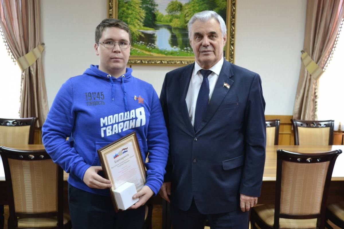Председатель Государственного Собрания Республики Мордовия Владимир Чибиркин встретился с активистами партии «Единая Россия», членами Молодежного парламента Данилом Ульяновым и Ильей Сауниным, которые в составе гуманитарной миссии работали на Донбассе. В течение двух недель в Донецке и Мариуполе ребята помогали врачам госпиталей, а также нуждающимся гражданам.