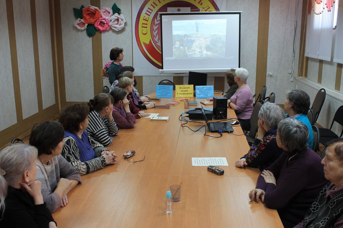 Обслуживаемые отделения совершили виртуальную экскурсию «Мамаев Курган. Героям Сталинградской битвы посвящается!». Познакомились с грандиозным памятником-ансамблем «Героям Сталинградской битвы». Некоторые из участников мероприятия ездили в тогда еще называвшийся город Волгоград и выдели Мамаев курган воочию. Прозвучала видеозапись песни в исполнении Л. Зыкиной «Растет в Волгограде березка». Вниманию пожилых людей была представлены книги известных писателей: Ю. Бондарева «Горячий снег», В. Гроссмана «Жизнь и судьба», Гончаренко Г.И. «Битва на Волге». Читали стихи М. Агашиной «Второе февраля», О. Берггольц «Сталинграду», Р. Рождественского «Мамаев Курган» и другие.