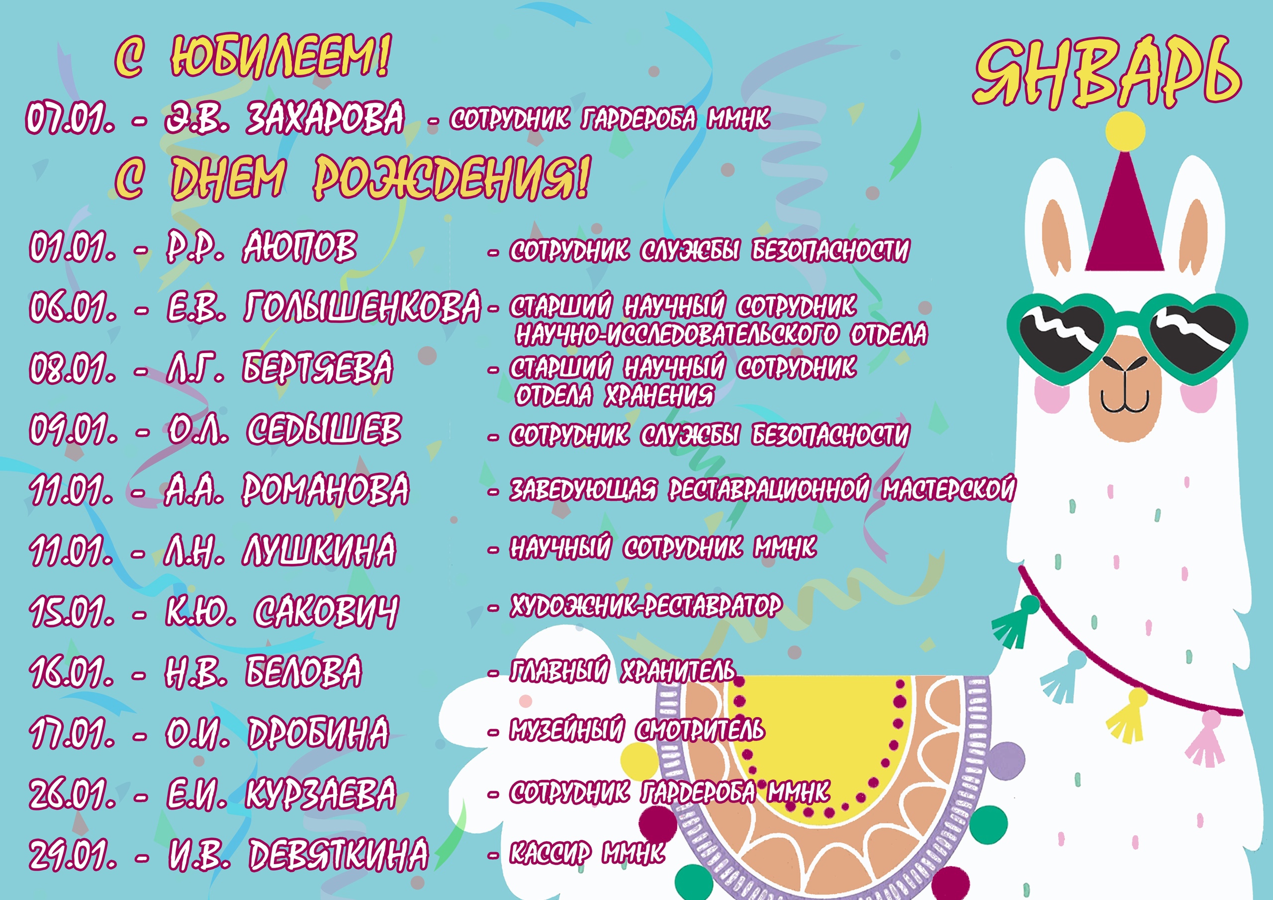 Мордовский республиканский музей изобразительных искусств имени С.Д. Эрьзи поздравляет своих январских именинников и юбиляров.