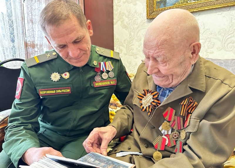 Ветеран спецоперации поздравил с Днём защитника Отечества ветерана Великой Отечественной войны