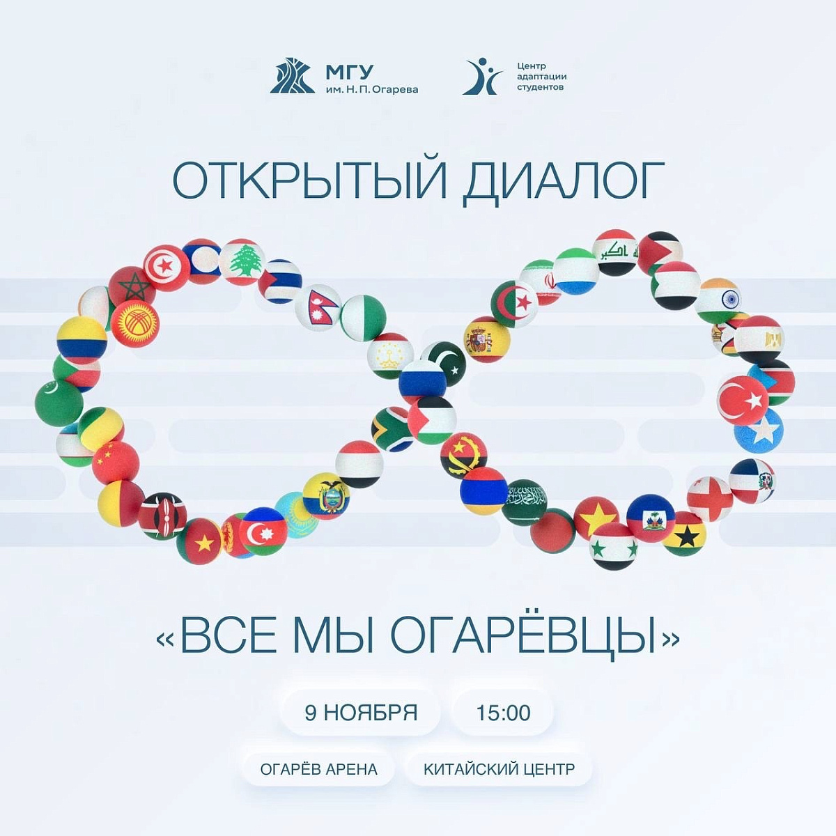 9 ноября в 15:00 в центре российско-китайской дружбы (Огарёв Арена, 3 этаж) состоится открытый диалог «Все мы Огарёвцы».
