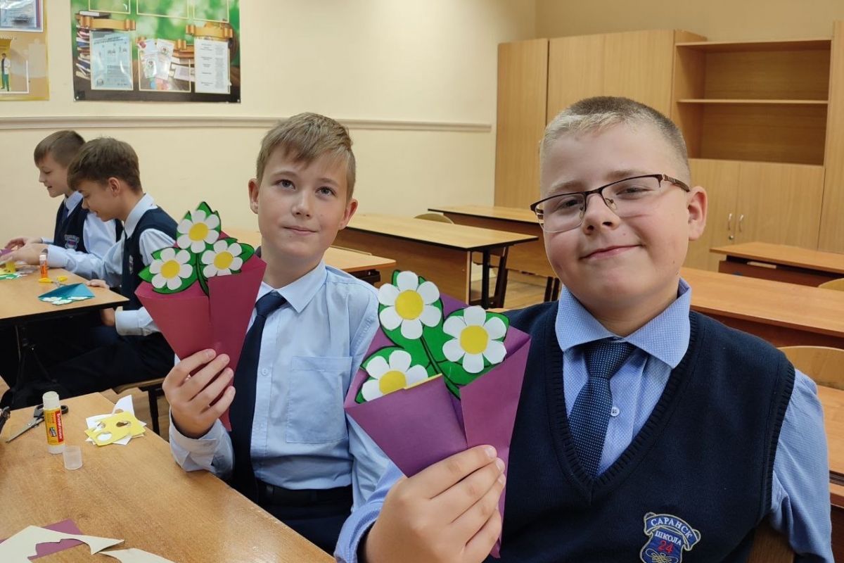В 18, 24 школах Саранска, а также в гимназии 23 провели мастер-класс по изготовлению праздничных открыток. Ребята из цветной бумаги сделали букетики цветов и подготовили поздравительные открытки с добрыми пожеланиями. На улицах города ученики раздали открытки прохожим пожилым людям и поздравили их с праздником.