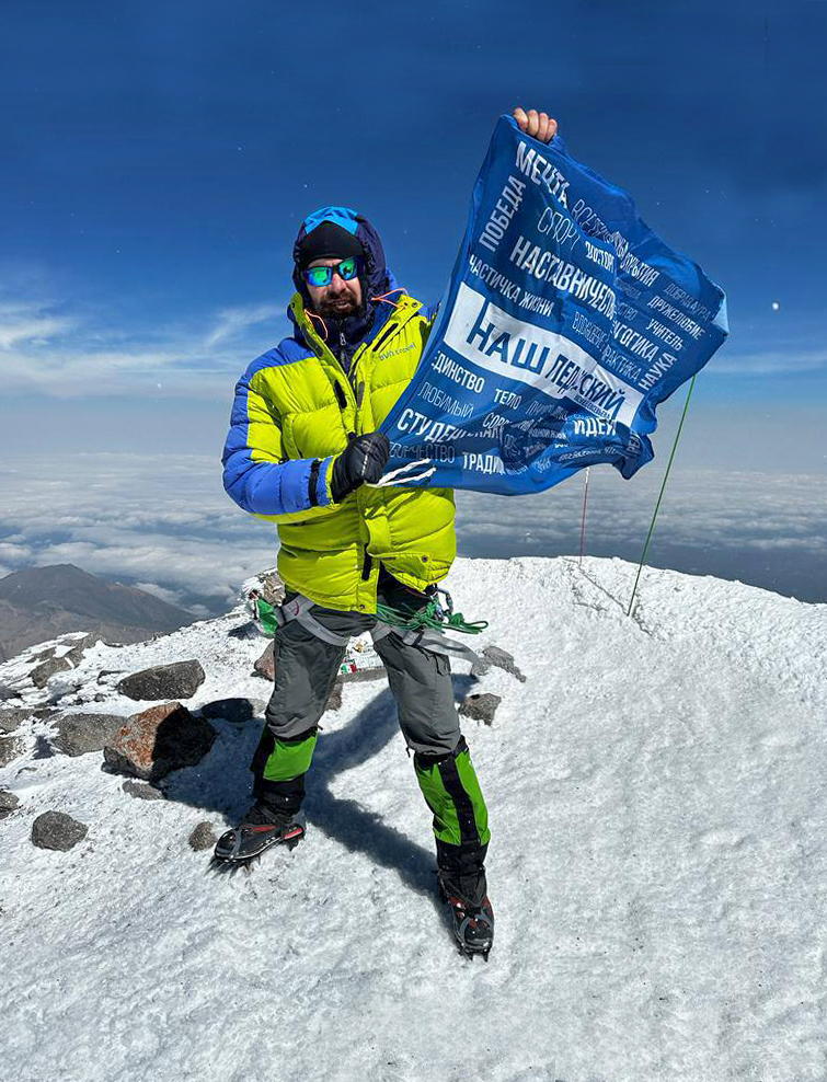 На высоте 5100 метров в честь Года педагога и наставника был развернут флаг с эмблемой Мордовского государственного педагогического университета имени М.Е. Евcевьева.