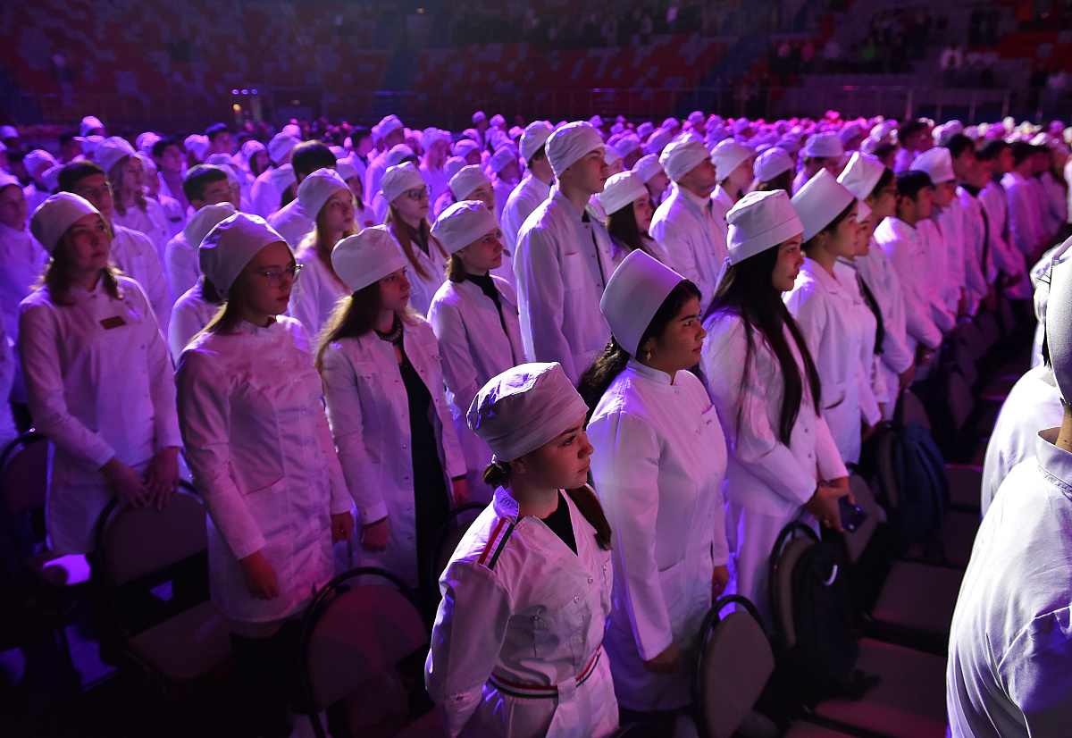 По традиции мероприятие началось с произнесения клятвы Гиппократа. Пришли поздравить студентов заместитель Министра здравоохранения Республики Мордовия Ольга Кшняйкина, ректор МГУ им. Н. П. Огарёва Дмитрий Глушко и директор медицинского института Лариса Балыкова.