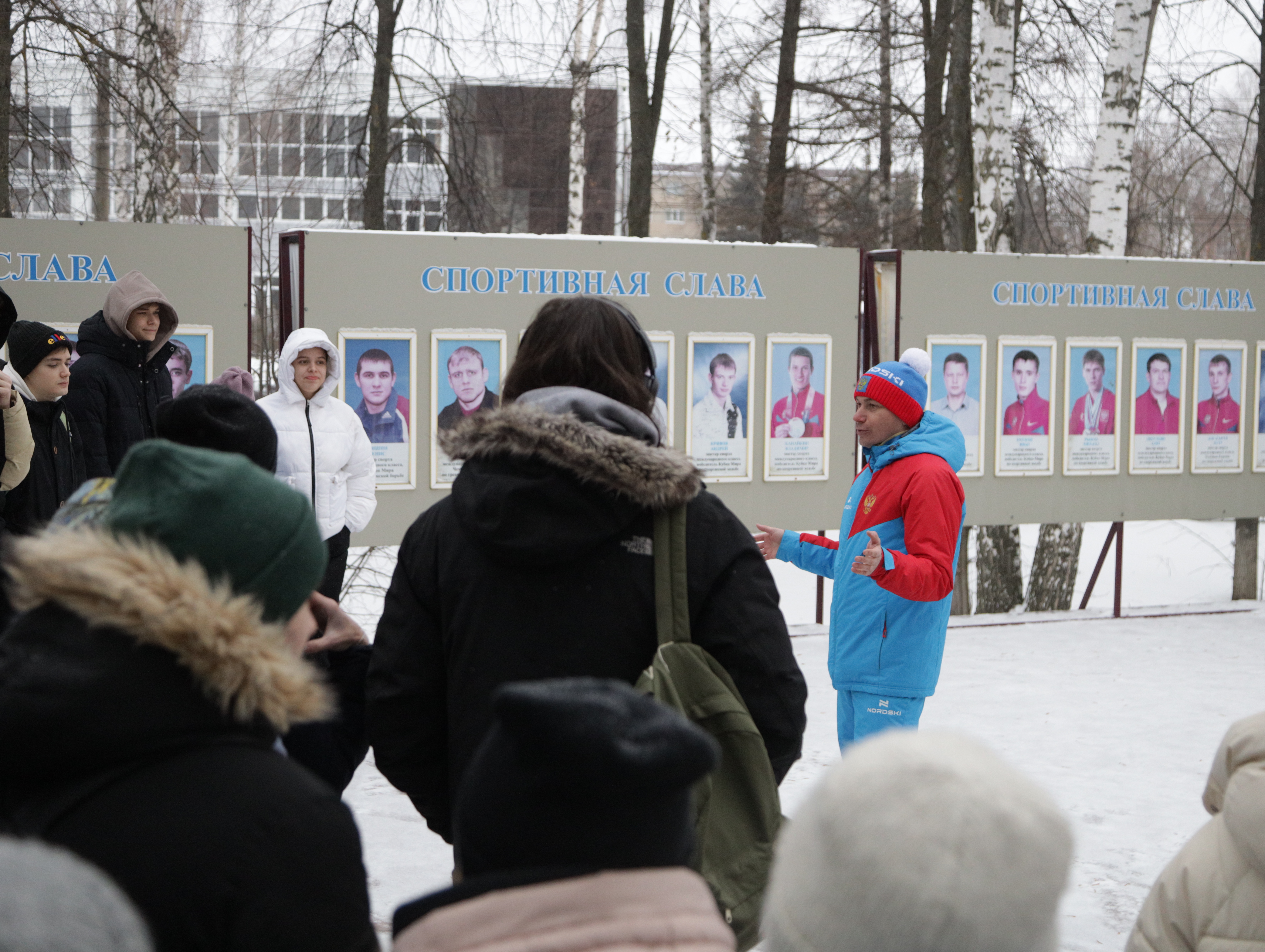 Об известных спортсменах, выпускниках и действующих студентах вуза рассказал Сергей Васильевич Бакулин, декан факультета физической культуры, проведя экскурсию по «Аллее славы ФФК».