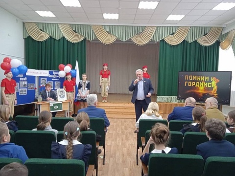 На открытии Парты Героя собрались педагоги и ученики школы, представители депутатского корпуса, общественных, ветеранских организаций.