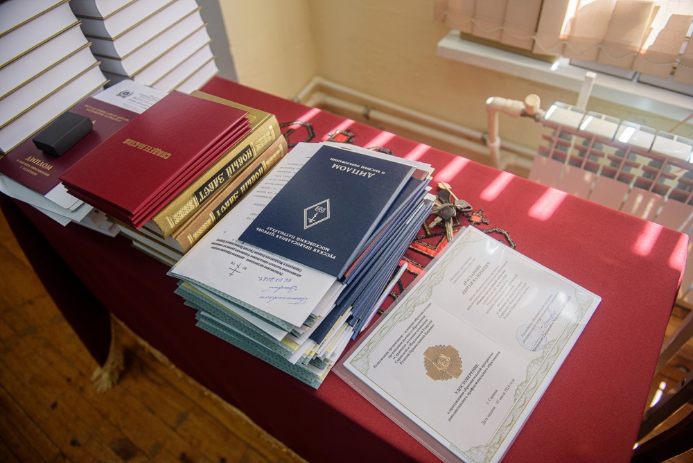 Торжественно из рук архипастыря дипломы получили выпускники очного и заочного отделений, удостоверения – выпускники курсов церковных специалистов в области катехизической, миссионерской, молодежной и социальной деятельности.