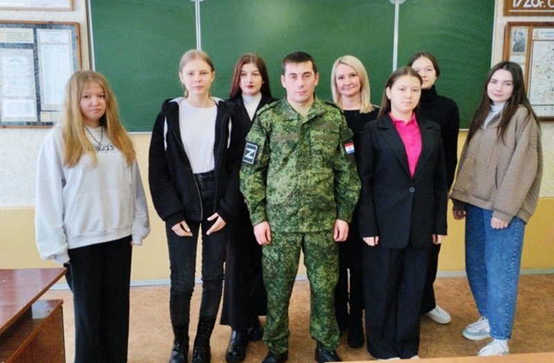 В марте рядовой Клещеногов получил тяжелое ранение во время боя. Из-под обстрелов вытащили сослуживцы. После длительного лечения был уволен со службы. Студенты интересовались, какие задачи выполняли бойцы, как был обустроен их быт и в чем испытывают острую нехватку. Также ребята выразили готовность помочь фронту и узнали о пунктах приема гуманитарной помощи в своем районе, куда в ближайшее время отнесут маскировочные сети и письма для бойцов.