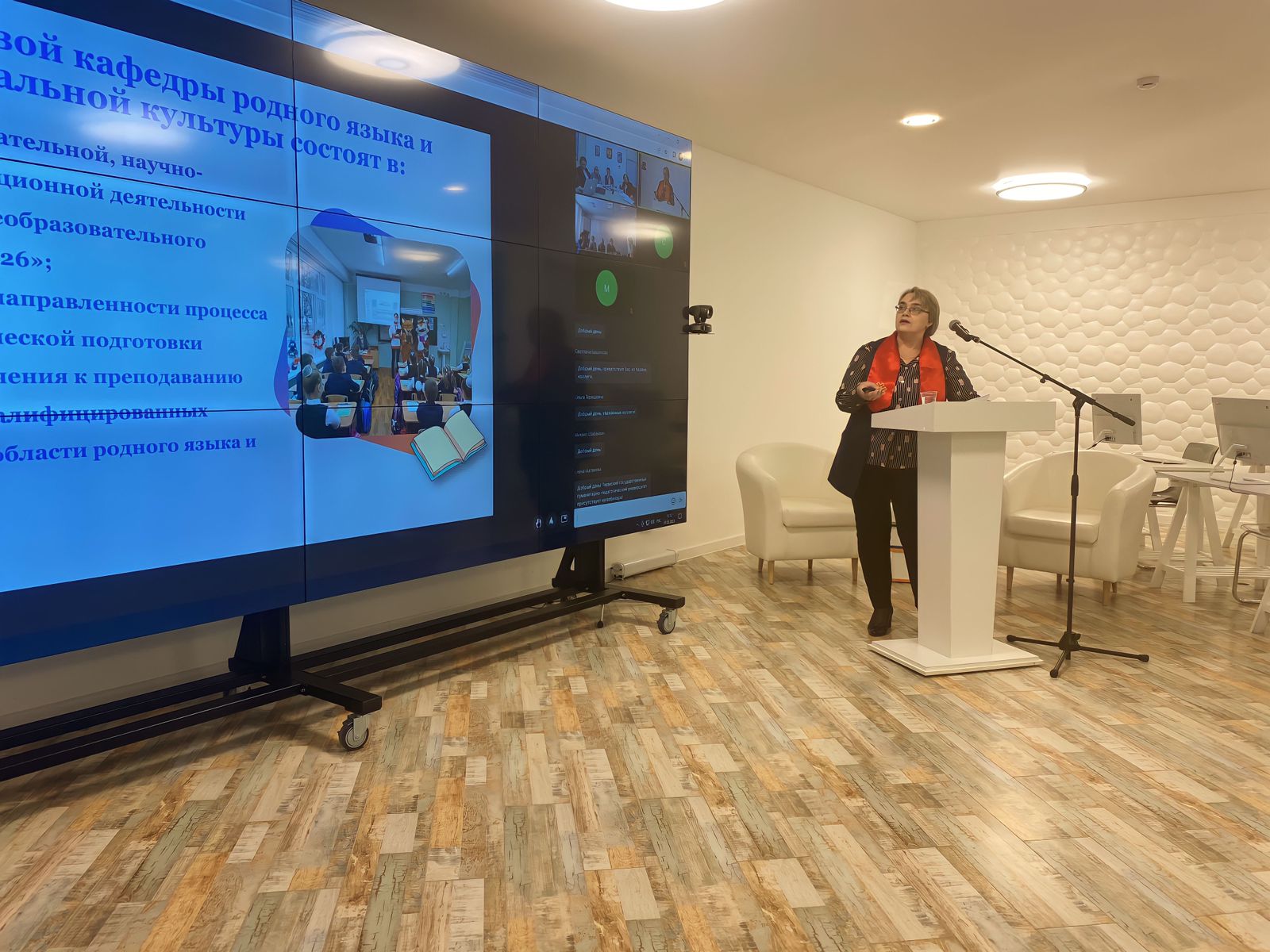 На мероприятии было представлено три блока выступлений. Опытом подготовки и научно-методического сопровождения учителя родного языка и родной литературы поделились представители вузов-соорганизаторов.
