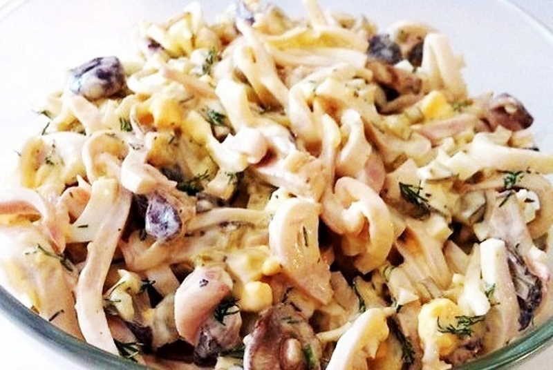 А впереди ещё одни праздник — Рождество. И хочется угостить родных и друзей чем-то необычным. К примеру, салатом из кальмаров.