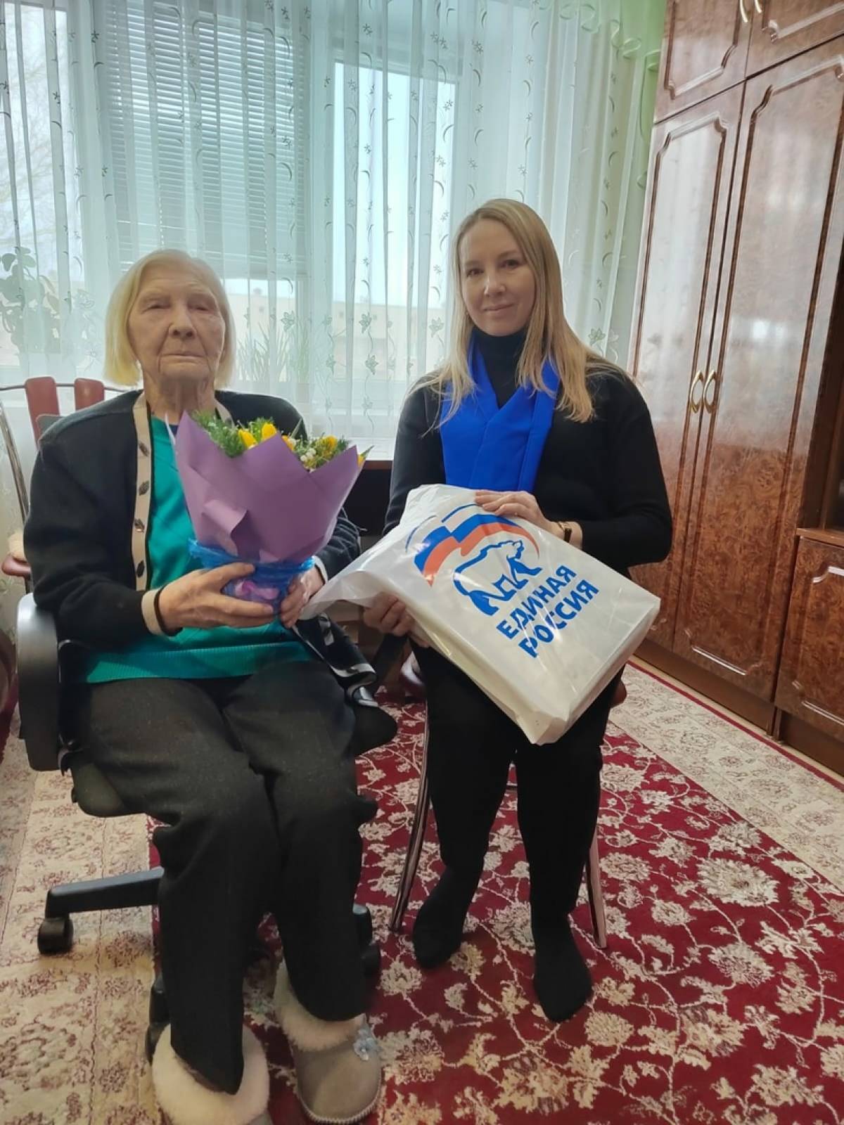 В предверии Международного женского дня активисты Октябрьского местного отделения поздравили старейшего члена партии "Единая Россия" Медведеву Ларису Андреевну.