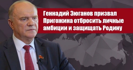 ГЕННАДИЙ ЗЮГАНОВ ПРИЗВАЛ ПРИГОЖИНА ОТБРОСИТЬ ЛИЧНЫЕ АМБИЦИИ И ЗАЩИЩАТЬ РОДИНУ!