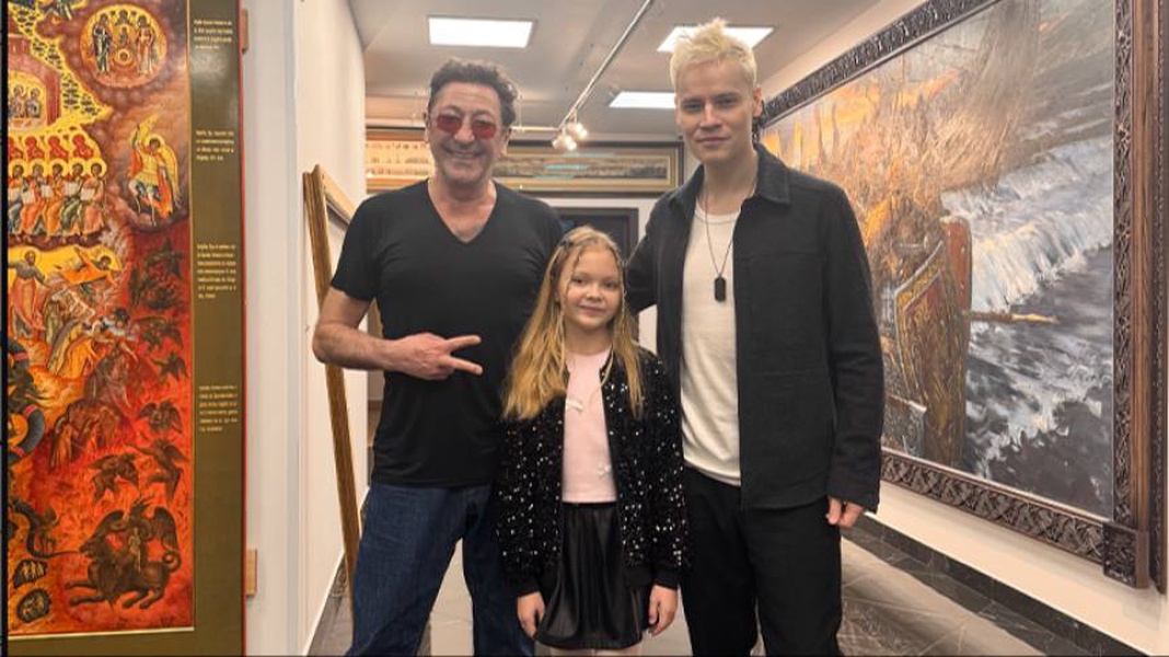 Маленькая поклонница певца также посетила музыкальную студию, а на память о встрече Амелия подарила Дронову жетон на цепочке, который он немедленно надел.