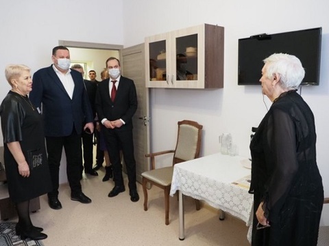 Гости заглянули в чайную комнату, где совсем по-домашнему расположились постояльцы интерната. Утренние чаепития - традиционные, кстати, здесь есть вся кухонная техника и посуда, чтобы испечь блинчики, например. «Спасибо за отличные условия. Какое здание для нас построили!» - поделились своими впечатлениями о новом интернате пожилые люди.