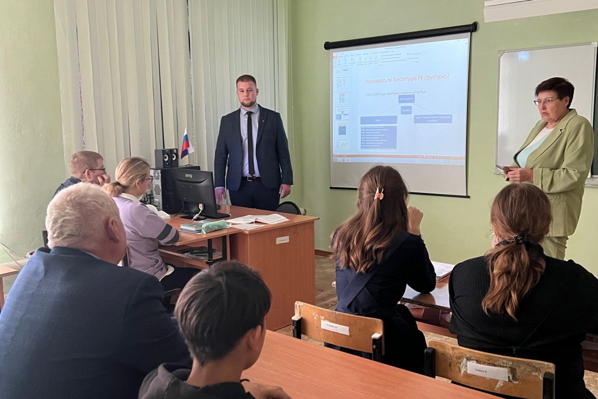 Встреча была посвящена 30-летию Конституции РФ. Гость рассказал ребятам о конституционных правах и обязанностях граждан нашей страны, разъяснил права молодежи и их ответственность за будущее Отечества, а также внесенные в 2020 году поправки.
