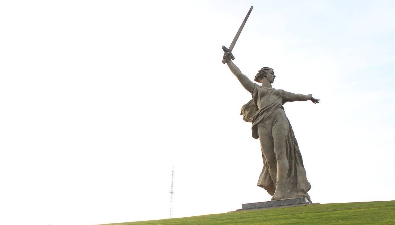 Памятник «Родина-мать», расположенный в Киеве, подсветили в цвета американского и украинского флагов.