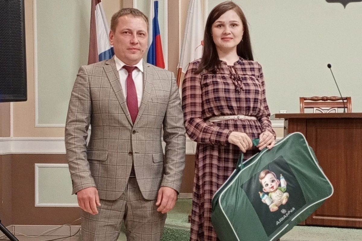 В Октябрьском районе в рамках акции "Подарок новорожденному" вручили комплекты для новорожденных следующим многодетным, студенческим семьям и семьям участников специальной военной операции.