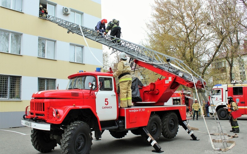 Пожарные в Саранске спасали условно пострадавших бойцов Росгвардии