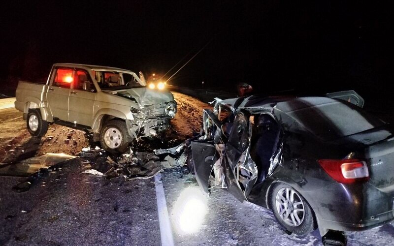 Страшная авария произошла в ночь с 23 на 24 февраля в Тыве. На 902 км трассы “Енисей” в 23:18 лоб в лоб столкнулись Renault Logan и “УАЗ”.