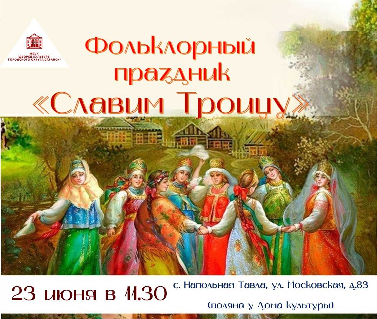 Дворец культуры городского округа Саранск приглашает на фольклорный праздник «Славим Троицу»