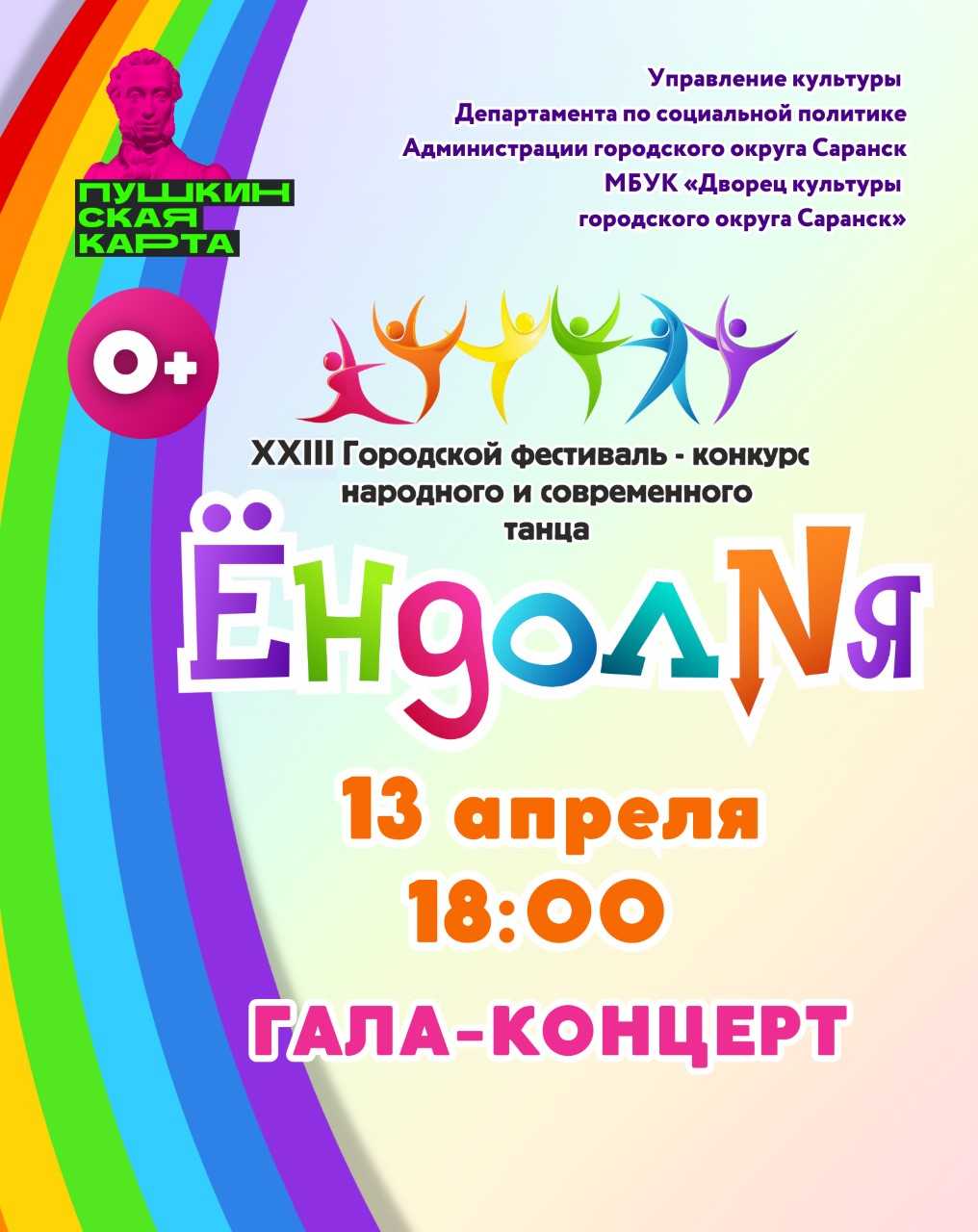 13 апреля в 18.00 на сцене Дворца культуры городского округа Саранск состоится гала-концерт ХХIII городского фестиваля-конкурса народного и современного танца «Ёндолня».