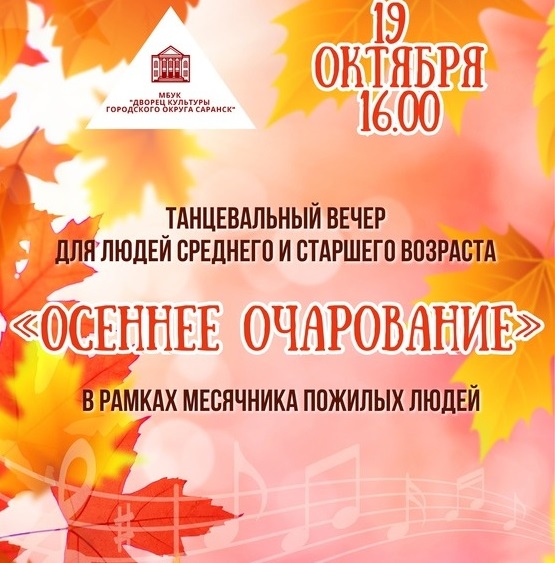 В 16:00 19 октября состоится вечер танцев для людей среднего и старшего возраста «Осеннее очарование».