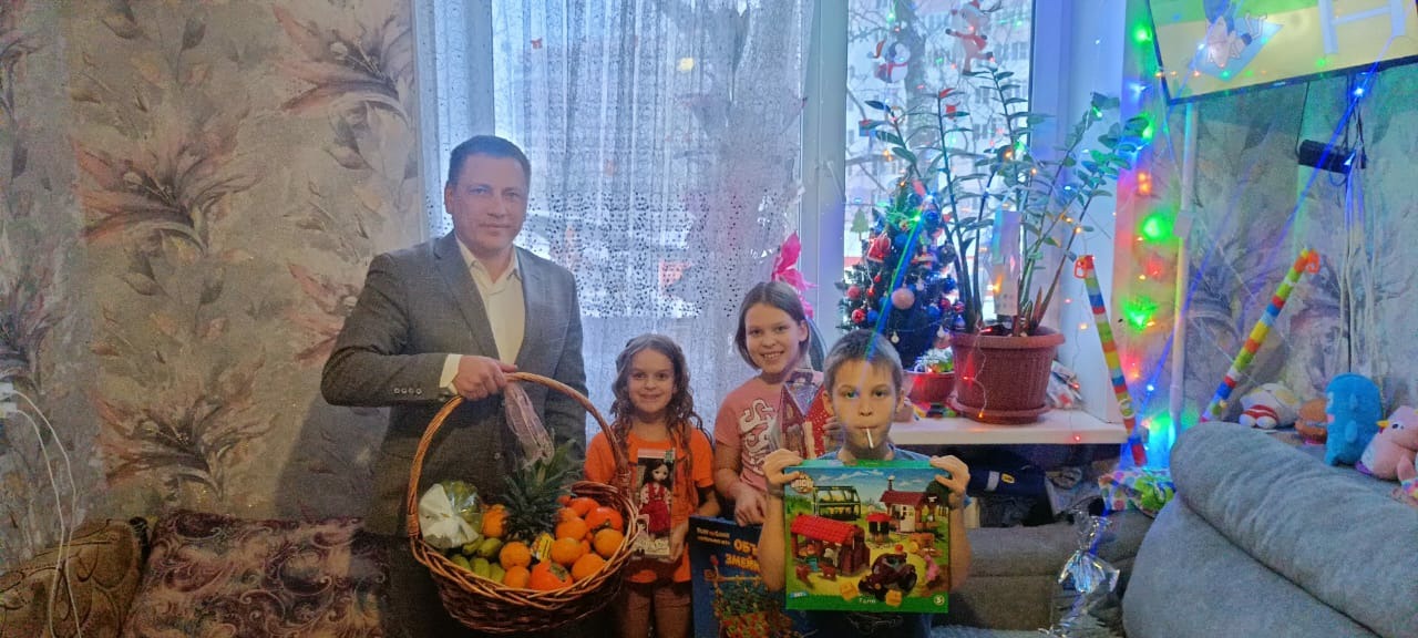 Сегодня Глава Администрации Октябрьского района городского округа Саранск Олег Леонидович Дыдыкин посетил и поздравил с наступающим Новым годом и Рождеством многодетную семью бойца,