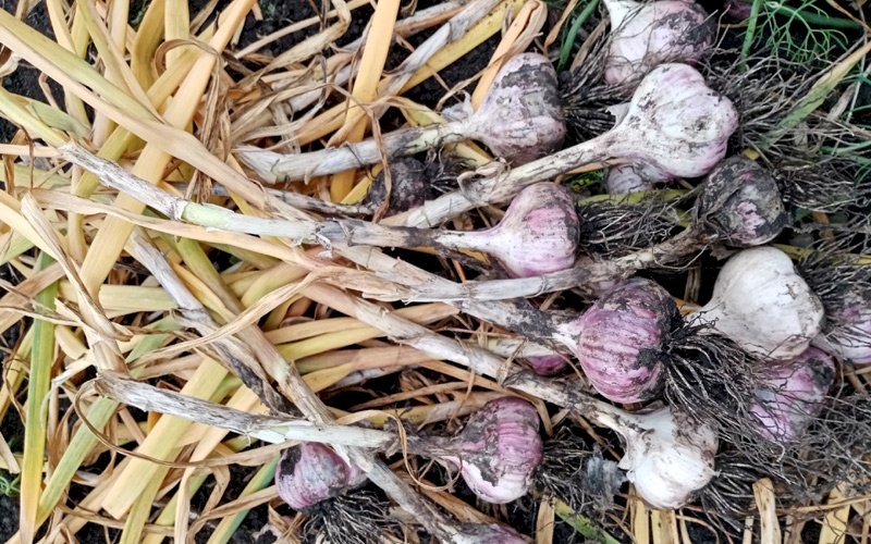 В зависимости от почвы, чеснок выкапывают (тяжелые суглинки и чернозем), или выдергивают (супесчаные и торфяные почвы), при этом минимально травмируя головку и не допуская ее растрескивания.