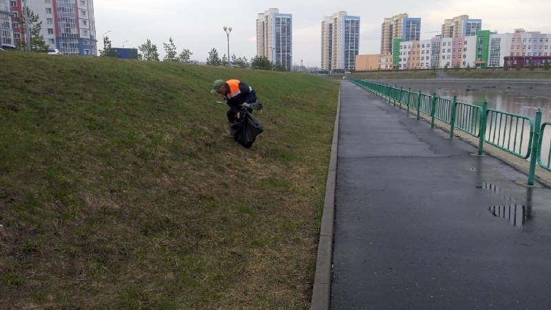 Уборка случайного мусора и грабление зеленых зон проводится по пр. 70 лет Октября и ул. Косарева.