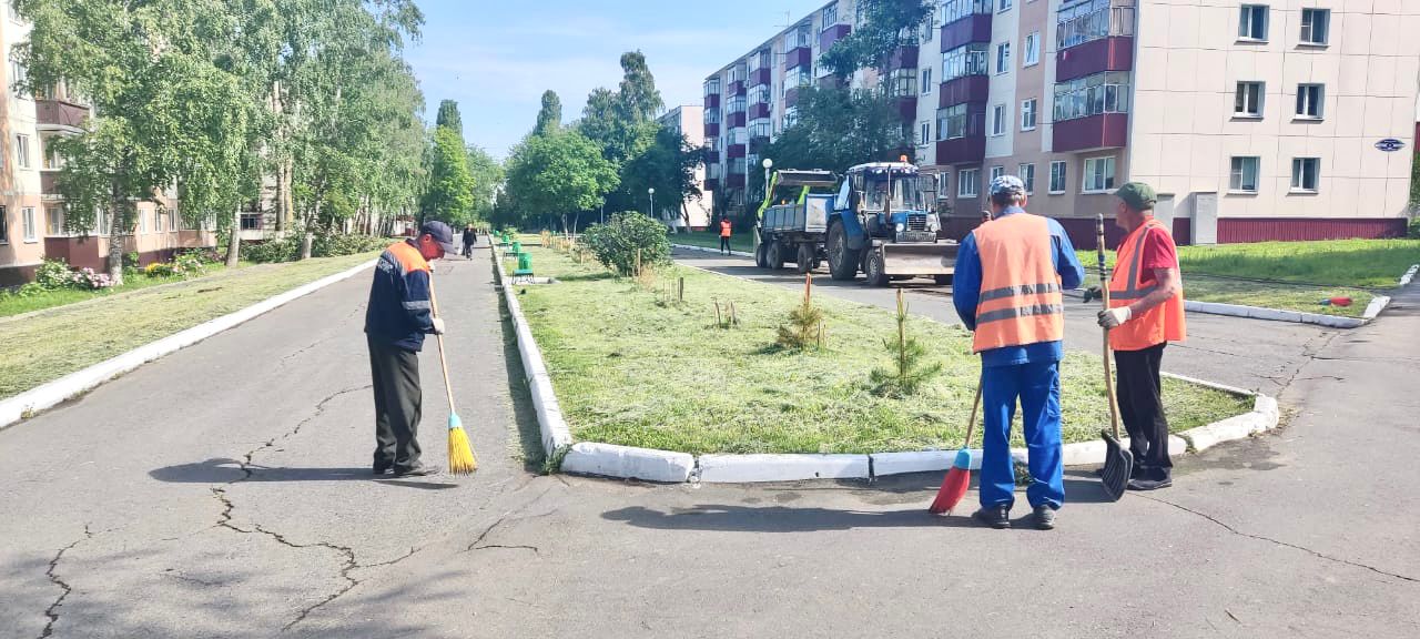8 июня в уборке задействовано: 53 единицы техники, 46 - в муниципальных предприятиях, 7 - в управляющих организациях, 1196 рабочих, 210 - муниципальных предприятий, 986 - управляющих организаций.