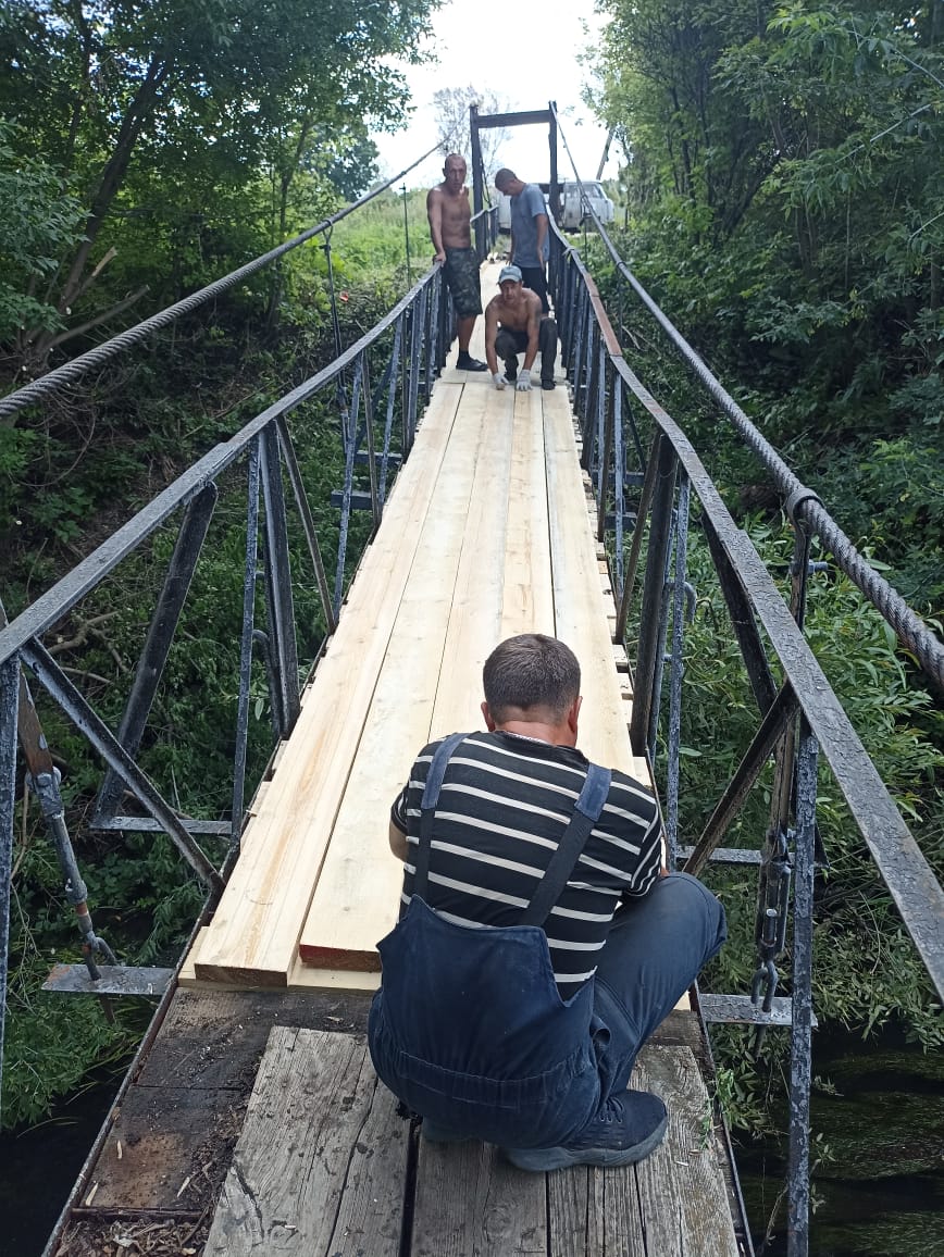 Работники МП "СпецСервис" приступили к ремонту пешеходного моста через реку Инсар в д. Полянки