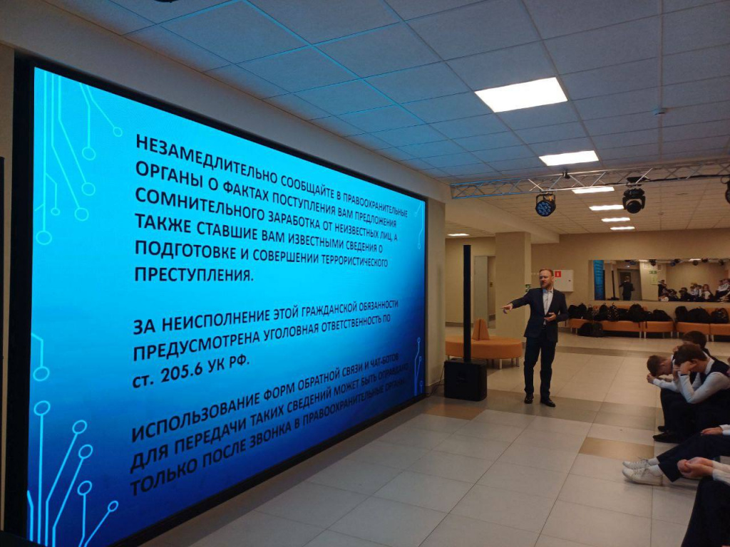 Отдельно остановились на противодействии вовлечения школьников в экстремистскую и террористическую деятельность посредством сети Интернет. Не нужно соглашаться на сомнительные предложения о заработке, даже если вам говорят об отсутствии риска или о быстрых больших доходах. Вероятнее всего, это мошенническая схема, которая приведёт к потере денег или к уголовной ответственности.