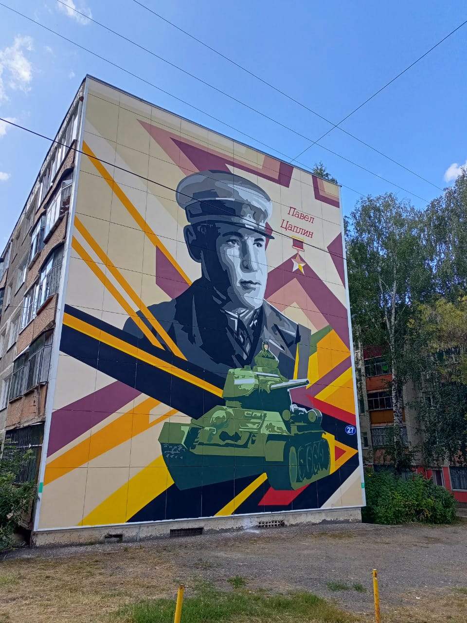 В Пролетарском районе завершены работы по созданию мурала – изображения Героя Советского Союза П.А. Цаплина