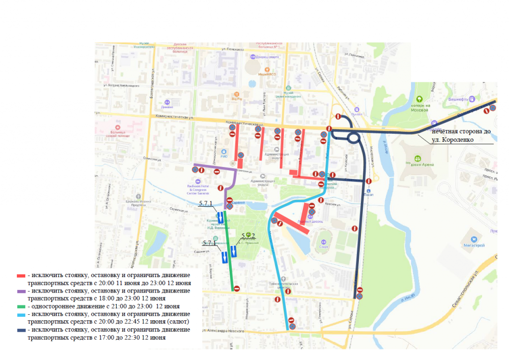 С 17:00 до 22:30 12 июня 2023 года до и после концерта, который будет проводиться на стадионе «Мордовия Арена»: