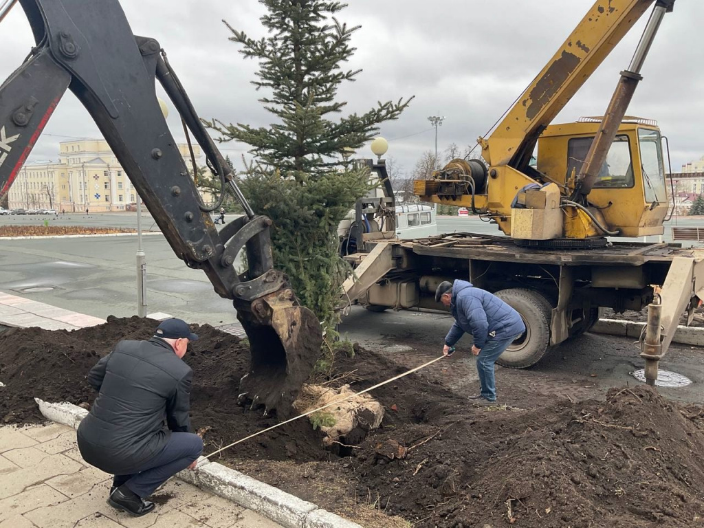 Сегодня в центральной части города высаживают деревья-крупномеры. 15 ёлок выращены в специализированном питомнике и с сегодняшнего дня они станут зеленым украшением нашего города.