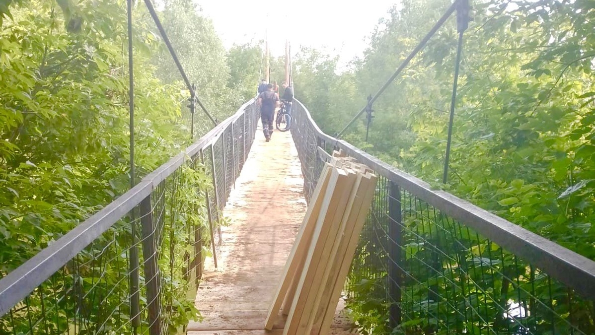 Все конструкции проверят на функциональную прочность, старый настил демонтируют и заменят новым. Разумеется, будут обновлены и перила — без ограждений перемещение по подвесному мосту может превратиться в акробатический квест.