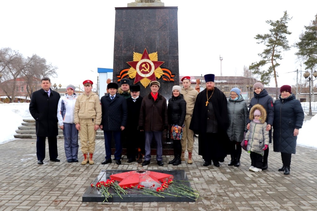 23 февраля 2023 года благочинный Большеберезниковского района протоиерей Евгений Ермольчев в День защитника Отечества на центральной площади с.