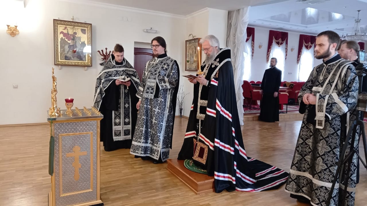 В первый день Великого поста митрополит Саранский и Мордовский Зиновий совершил уставное богослужение в домовом храме в честь благоверного князя Александра Невского в паломническом центре Иоанно-Богословского Макаровског