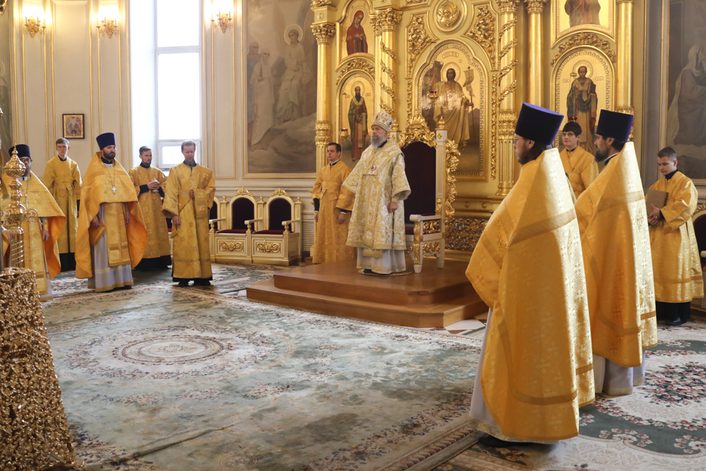 12 февраля, в Неделю о блудном сыне, митрополит Саранский и Мордовский Зиновий совершил Воскресную Божественную Литургию в кафедральном соборе святого праведного воина Феодора Ушакова.