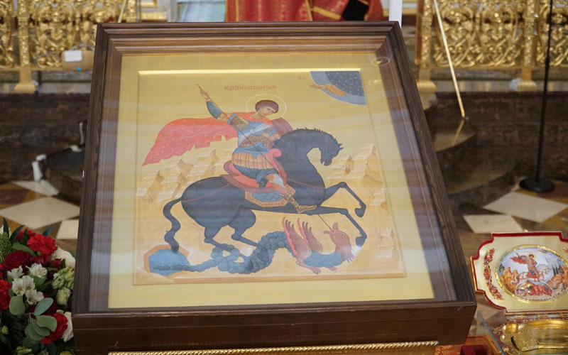 В эти дни (до вечера 11 октября) в Кафедральном Свято-Феодоровском соборе Саранска находится великая святыня: частица мощей любимого всеми святого — великомученика Георгия Победоносца.