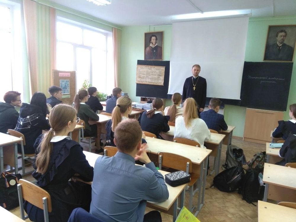 Клирики храма в честь Казанской иконы Божией Матери на Светотехстрое регулярно принимают участие в беседах со школьниками.