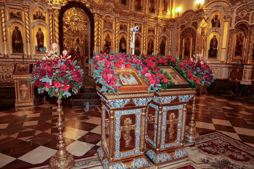 Богослужение возглавили митрополит Симбирский и Новоспасский Лонгин и митрополит Саранский и Мордовский Зиновий. Архипастырям сослужили духовник Саранской епархии, наместник Иоанно-Богословского Макаровского монастыря игумен Мелетий (Кисняшкин), ключарь собора, секретарь епархии протоиерей Виктор Хохлов, секретарь Архиерейского Совета Мордовской митрополии, ответственный секретарь Саранского епархиального управления, благочинный церквей Центрального округа Саранска протоиерей Алексий Селезнев, ректор Саранской Духовной Семинарии протоиерей Алексий Зверев, проректор протоиерей Павел Горбунов, настоятель Успенского храма в Саранске протоиерей Александр Адышкин, благочинный Ромодановского района протоиерей Владимир Кугушев, благочинный Северо-Западного церковного округа иерей Виталий Шибанов, клирики собора.