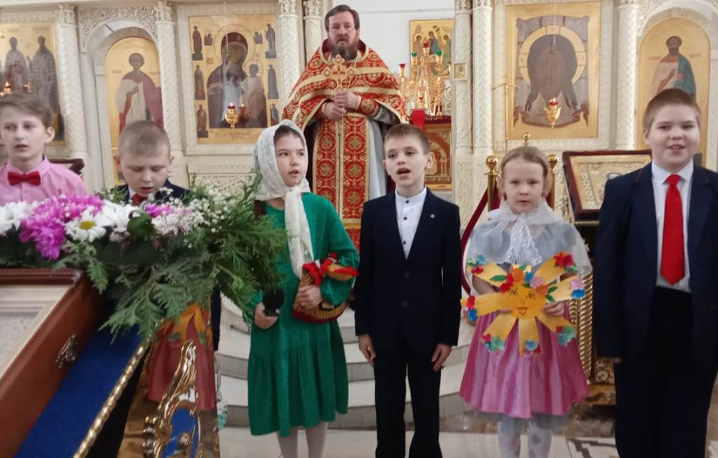 Прихожан Никольского кафедрального собора г.Ардатова с Пасхой Христовой поздравили ученики Воскресной школы