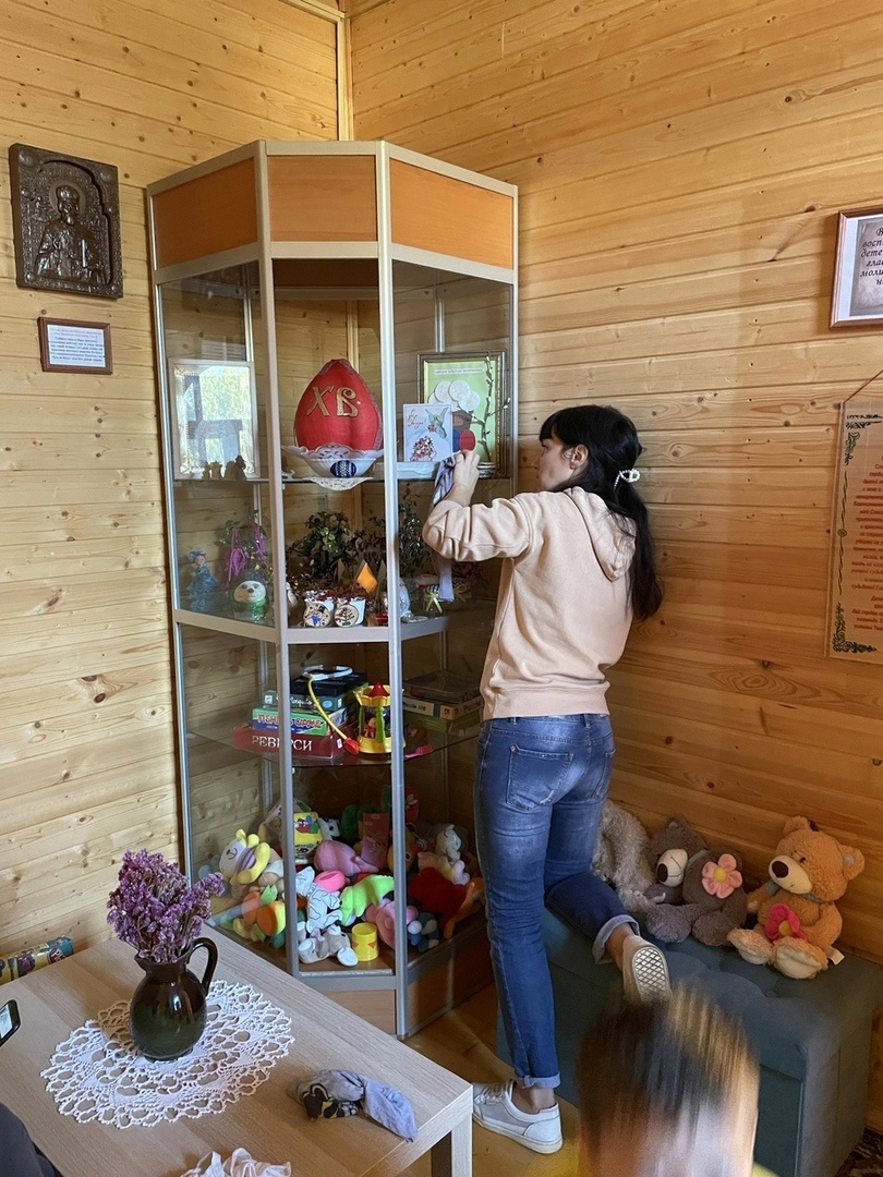 Благочинный протоиерей Владимир Кугушев вместе с руководителем центра проверяет, что еще можно сделать в преддверии занятий. А родители маленьких воспитанников школы провели генеральную уборку.