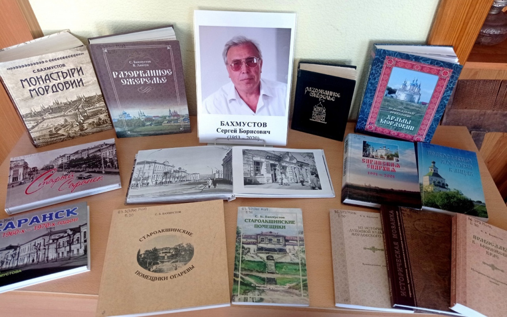 Экспонируются книги: «Разорванное ожерелье», «Старый Саранск», «Саранск 1960-х – 1970-х годов», «Староакшинские помещики», а также «Храмы Мордовии», «Монастыри Мордовии», «Православие в мордовском крае», которые воспроизводят перед нашим взором удивительную картину Святой Руси и важной части ее – Мордовии.