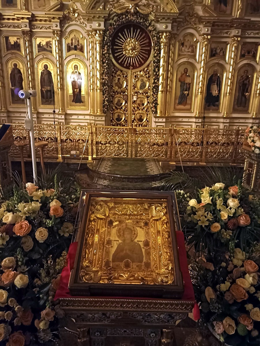 Каждый день духовенство кафедрального собора святого праведного воина Феодора Ушакова совершало перед образом молебное пение с чтением акафиста. По вечерам, после молебна, клирики совершали помазание святым Миром от иконы прихожан и паломников, и переносили образ в алтарь на хранение до утра. А утром святыня вновь представала перед молящимся, и к ней тянулись вереницы верующих - каждый со своими молитвами ко Пресвятой Владычице нашей Приснодеве Марии.