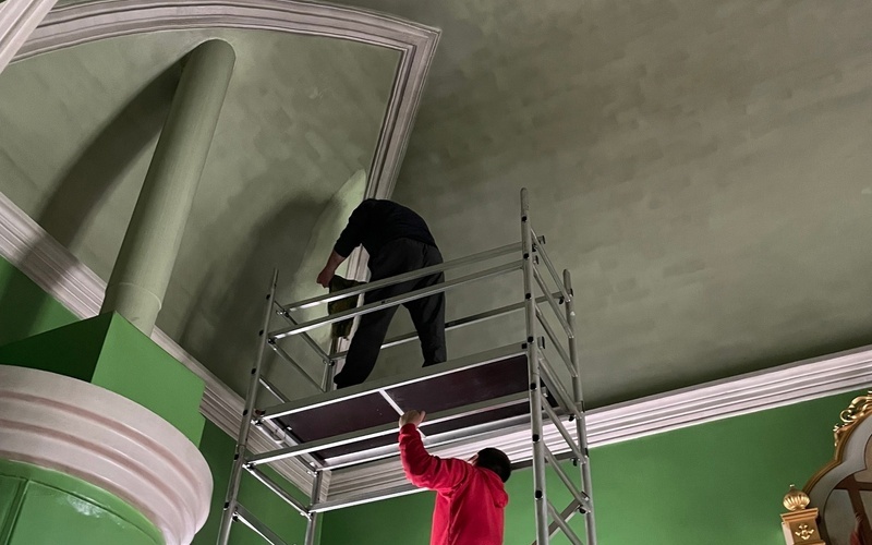 “Наши помощники проделали очень кропотливую и ответственную работу. На большой высоте ребята специальными растворами вручную тщательно отмыли потолок от многослойной копоти и пыли”, — отметили в Саранской епархии РПЦ.