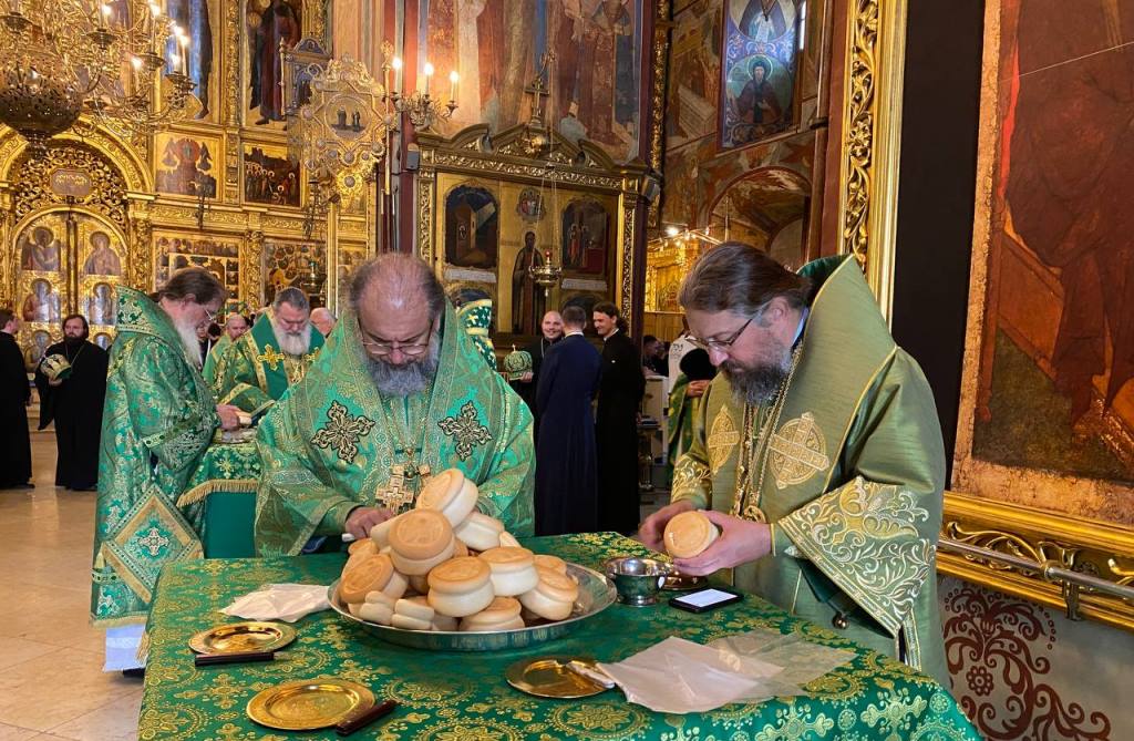 18 июля 2023 года, в день праздника обретения честных мощей преподобного Сергия, игумена Радонежского (1422), Святейший Патриарх Московский и всея Руси Кирилл совершил Божественную литургию на Соборной площади Свято-Троицкой Сергиевой лавры. Торжественное богослужение совершалось перед чтимой иконой преподобного Сергия Радонежского. Для совершения праздничных всенощного бдения и Божественной литургии на Соборной площади был устроен помост, а перед Успенским собором Лавры — престол под сенью. Его Святейшеству за Литургией сослужили: митрополит Ювеналий (Поярков); митрополит Ташкентский и Узбекистанский Викентий; глава Среднеазиатского митрополичьего округа; митрополит Санкт-Петербургский и Ладожский Варсонофий; митрополит Воскресенский Дионисий, управляющий делами Московской Патриархии, первый викарий Патриарха Московского и всея Руси по г. Москве; епископ Сергиево-Посадский и Дмитровский Фома, наместник Лавры; епископ Звенигородский Кирилл, ректор Московской духовной академии; собор архиереев Русской Православной Церкви. В богослужении участвовали архиереи и духовенство Поместных Православных Церквей: митрополит Филиппопольский Нифон, представитель Патриарха Антиохийского и всего Востока при Патриархе Московском и всея Руси; епископ Моравичский Антоний, представитель Патриарха Сербского при Патриархе Московском и всея Руси; архимандрит Серафим (Шемятовский), представитель Православной Церкви Чешских земель и Словакии при Московском Патриаршем престоле; протоиерей Даниил Андреюк, представитель Православной Церкви в Америке; архимандрит Исаия (Лукич), настоятель монастыря блаженной Матроны в Республике Сербской. Также Святейшему Владыке сослужили: архимандрит Макарий (Веретенников), доктор церковной истории, насельник Лавры; протопресвитер Владимир Диваков, секретарь Патриарха Московского и всея Руси по г. Москве; архимандрит Иеремия (Соловьев), насельник Лавры; протоиерей Николай Балашов, советник Патриарха Московского и всея Руси; архимандрит Иона (Светник), клирик Ровеньковской епархии; протоиерей Максим Козлов, председатель Учебного комитета Русской Православной Церкви; архимандрит Алексий (Туриков), личный секретарь Святейшего Патриарха Кирилла; архимандрит Павел (Кривоногов), наместник Саввино-Сторожевского ставропигиального мужского монастыря; игумен Иларион (Гоюк), насельник Лавры; иеромонах Никандр (Пилишин), и.о. председателя Финансово-хозяйственного управления Московского Патриархата; иерей Василий Лосев, руководитель Юридической службы Московской митрополии; насельники Троице-Сергиевой лавры и подворий обители в священном сане; духовенство г. Москвы. На богослужении присутствовали: заместитель председателя Государственной Думы Федерального Собрания РФ А.Ю. Кузнецова; председатель Либерально-демократической партии России, руководитель фракции ЛДПР в Государственной Думе ФС РФ, председатель Комитета Государственной Думы по международным делам Л.Э. Слуцкий; председатель Московской областной Думы И.Ю. Брынцалов; старший вице-президент, финансовый директор ПАО «ГМК «Норильский никель»» С.Г. Малышев; глава Сергиево-Посадского городского округа Московской области Д.А. Акулов; и.о. генерального директора Художественно-производственного предприятия Русской Православной Церкви «Соф